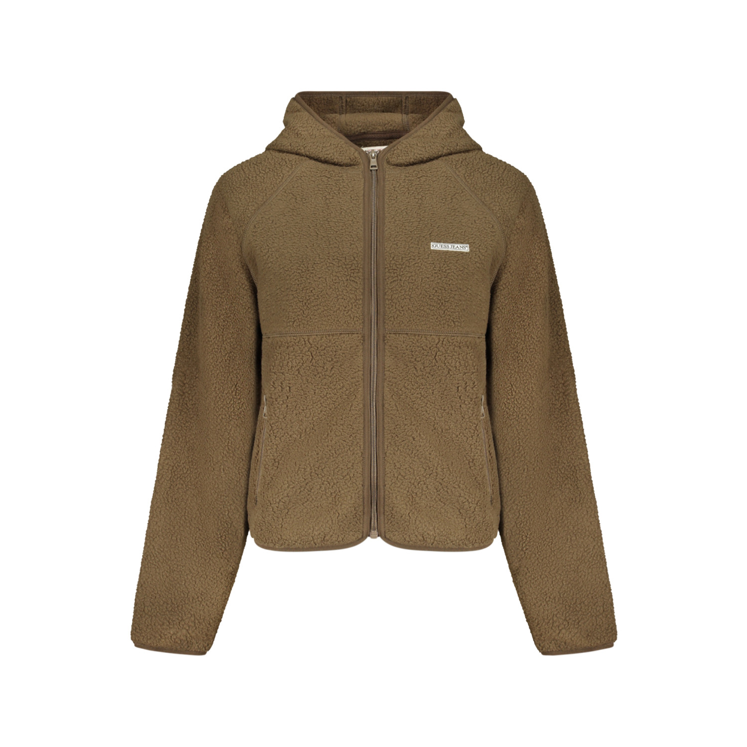 FELPA MANICHE LUNGHE CON CAPPUCCIO, 2 TASCHE ESTERNE, ZIP, APPLICAZIONE, LOGO