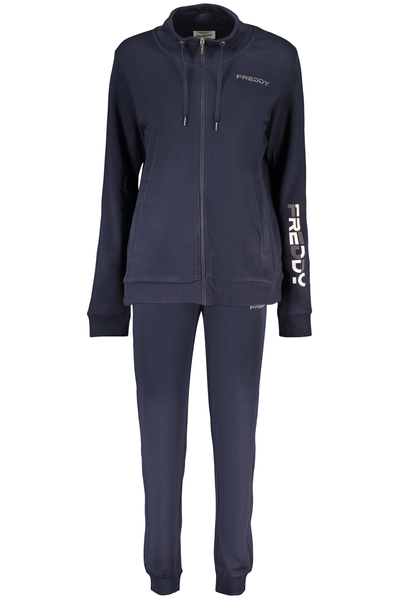 SET FELPA E PANTALONE, FELPA MANICHE LUNGHE, 2 TASCHE, ZIP, PANTALONE SPORTIVO, ELASTICO IN VITA CON LACCI, POLSINO ALLA CAVIGLIA, APPLICAZIONE STRASS, STAMPA, LOGO