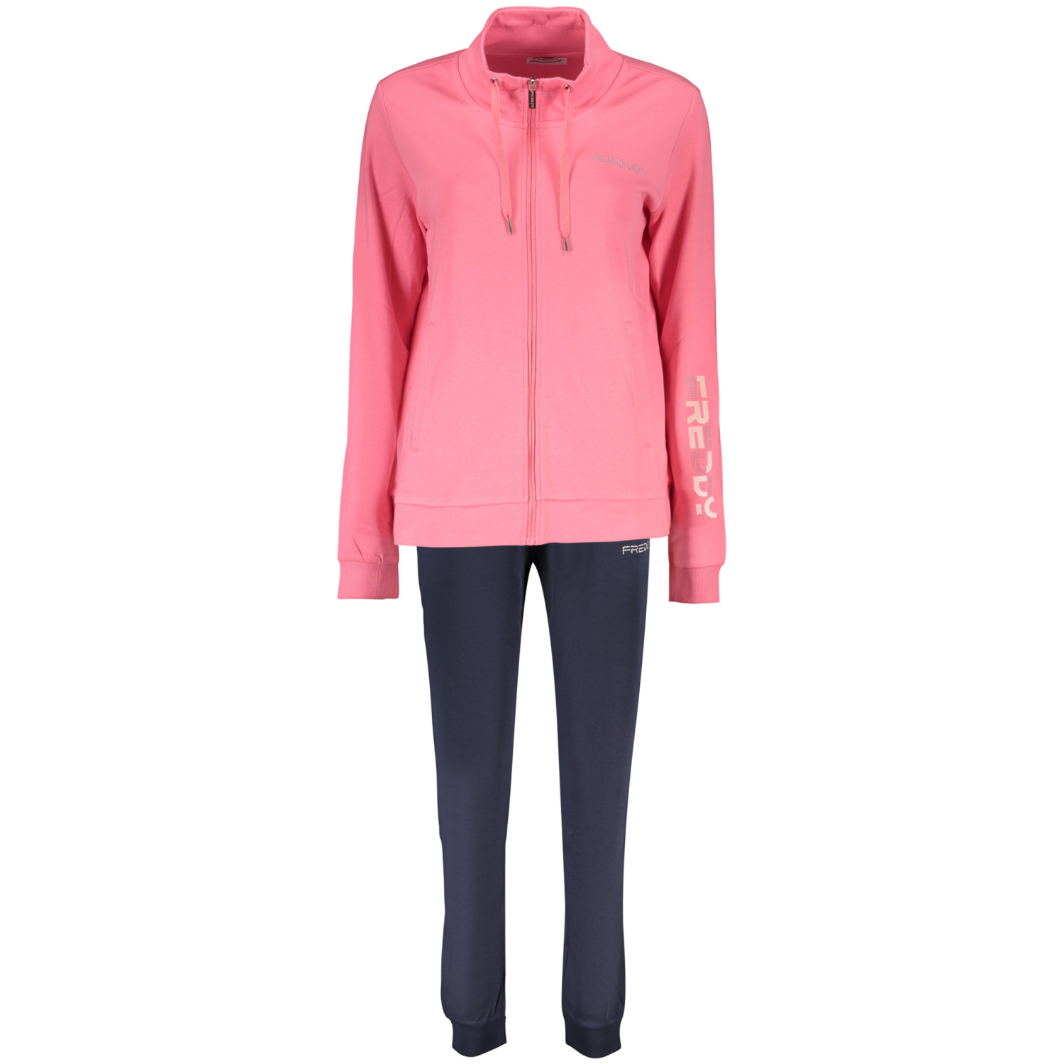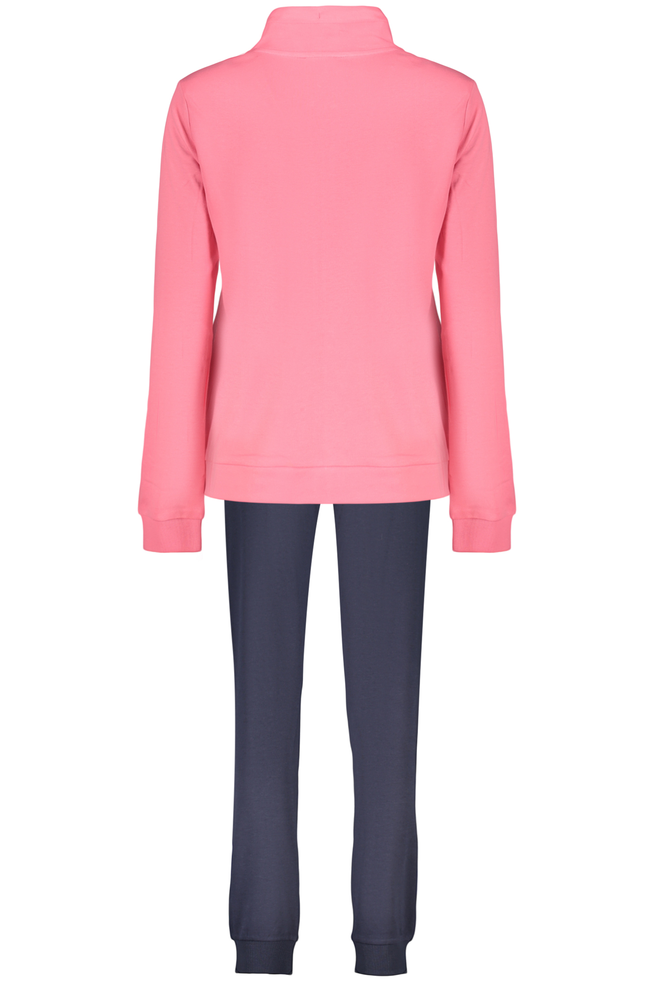 SET FELPA E PANTALONE, FELPA MANICHE LUNGHE ROSA, 2 TASCHE, ZIP, PANTALONE SPORTIVO BLU, ELASTICO IN VITA CON LACCI, POLSINO ALLA CAVIGLIA, APPLICAZIONE STRASS, STAMPA, LOGO