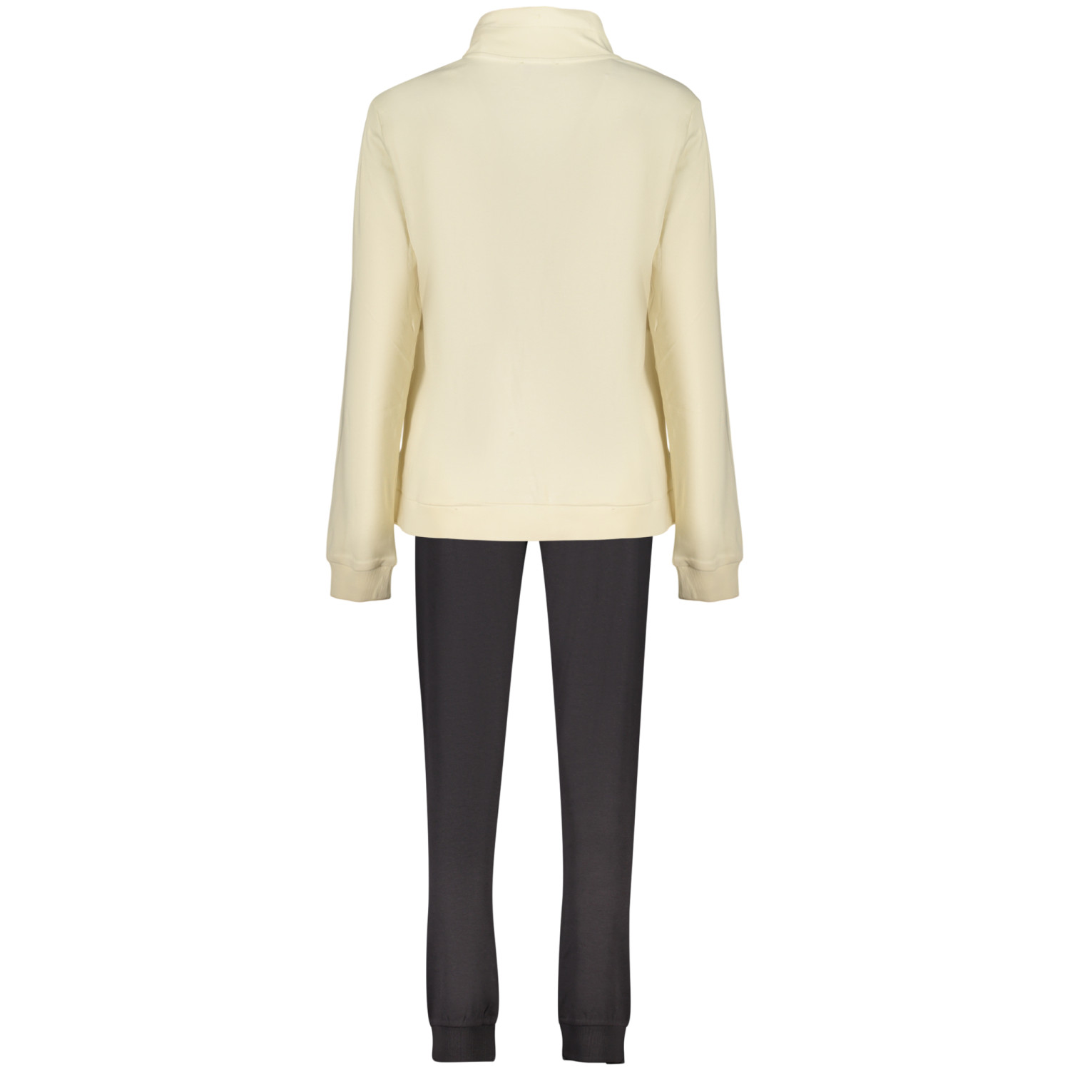 SET FELPA E PANTALONE, FELPA MANICHE LUNGHE BEIGE, 2 TASCHE, ZIP, PANTALONE SPORTIVO NERO, ELASTICO IN VITA CON LACCI, POLSINO ALLA CAVIGLIA, APPLICAZIONE STRASS, STAMPA, LOGO