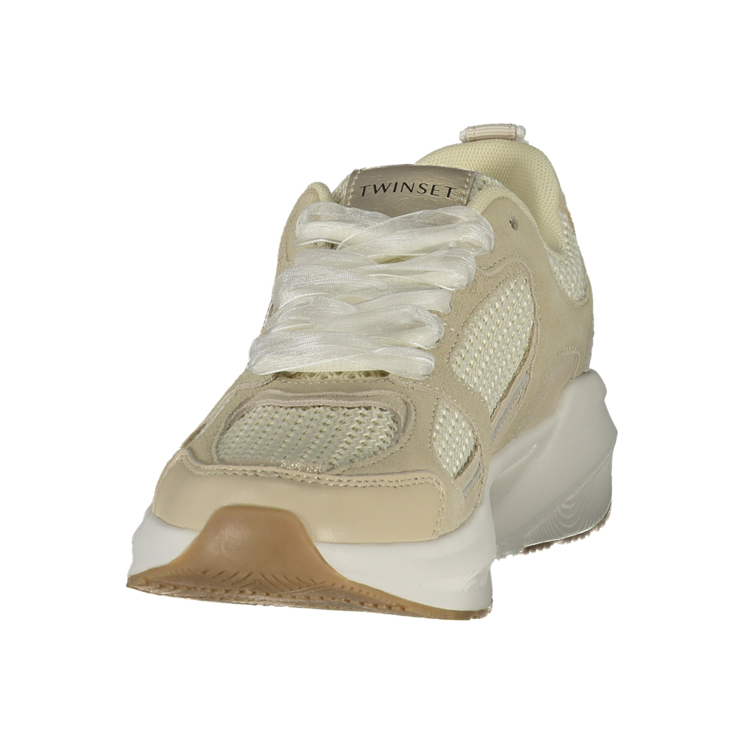 CALZATURA SPORTIVA CON LACCI, DETTAGLI A CONTRASTO BEIGE/CREMA, PLANTARE REMOVIBILE, STAMPA, LOGO
